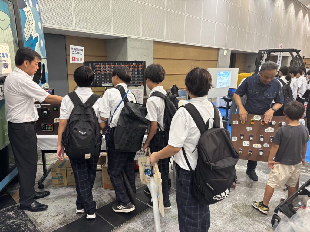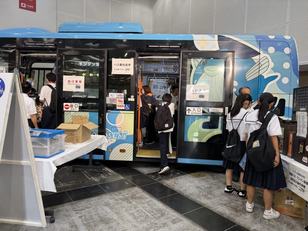 今回は中高生だけでなく一般の家族連れ(お子様連れ)の方も多く参加しており、普段座ることのできない運転席に実際に座ったりバス車内の操作を行ったりと、よりバス運転手の魅力をお伝えできたかと思います。