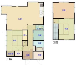| 間取り | 3LDK 1階:LDK・和室6帖 2階:洋室6帖・洋室6帖 |